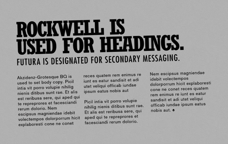 The perfect pairing turned out to be Futura STD and a Condensed version of Rockwell.
